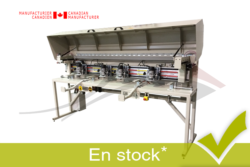 Machine à penture automatique à 4 têtes pour la préparation des cadres de porte standard et non standard. 4 toupies ajustables et rétractables, il est aussi possible d'utiliser chaque toupie individuellement.